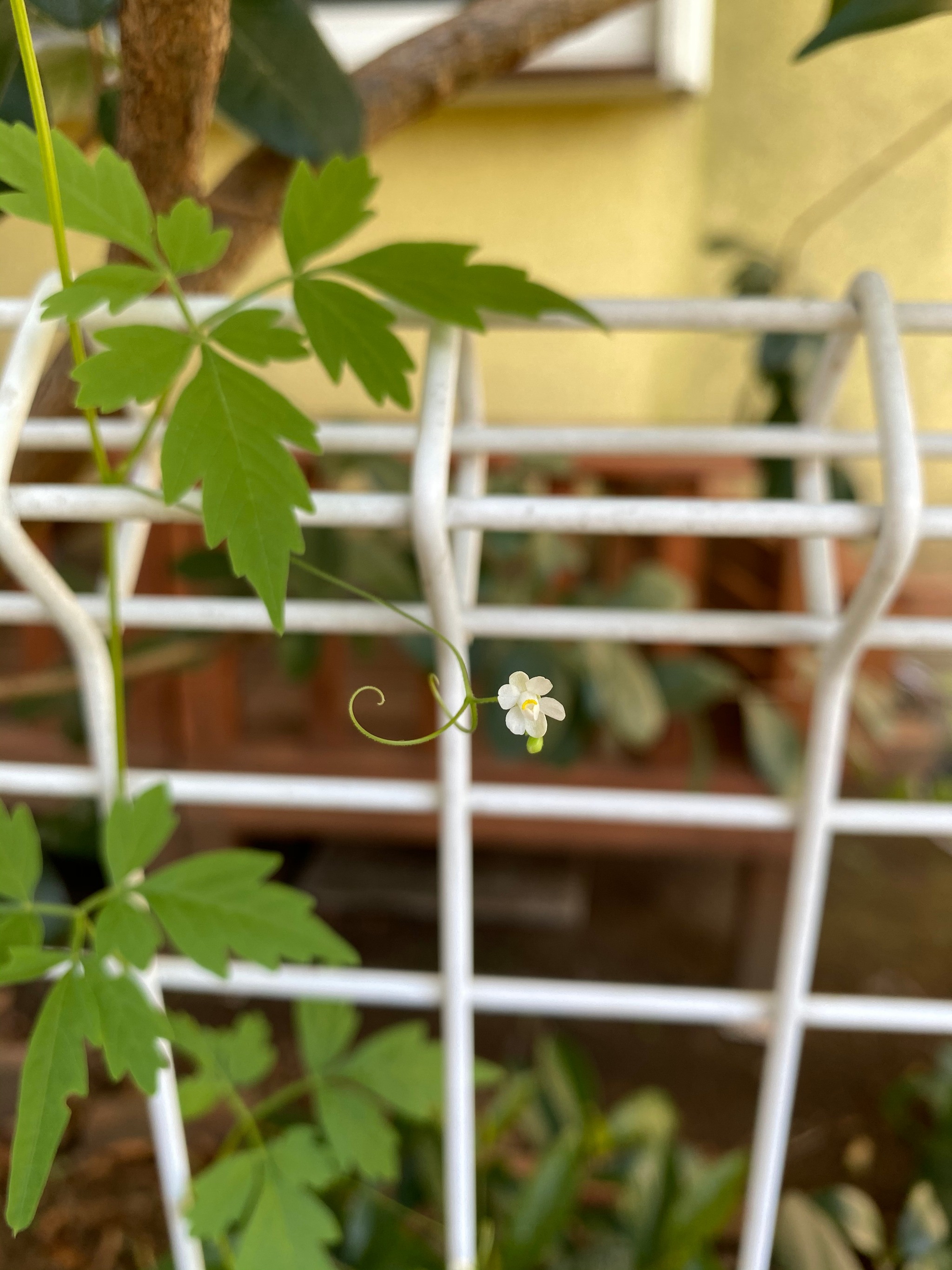 ふうせんかずらのお米つぶみたいに小さな花が咲き始めました。
